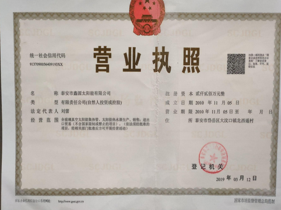 山东省泰安市鑫源太阳能有限公司
